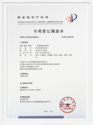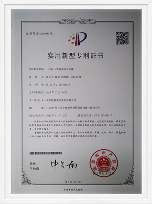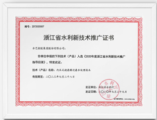 浙江省水利新技術(shù)推廣證書-內(nèi)壓式超濾膜過濾水處理技術(shù)