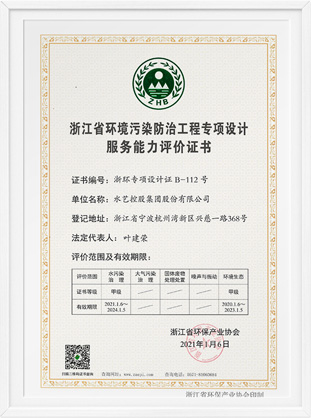 環(huán)境污染防治工程專項(xiàng)設(shè)計(jì)服務(wù)能力評(píng)價(jià)證書