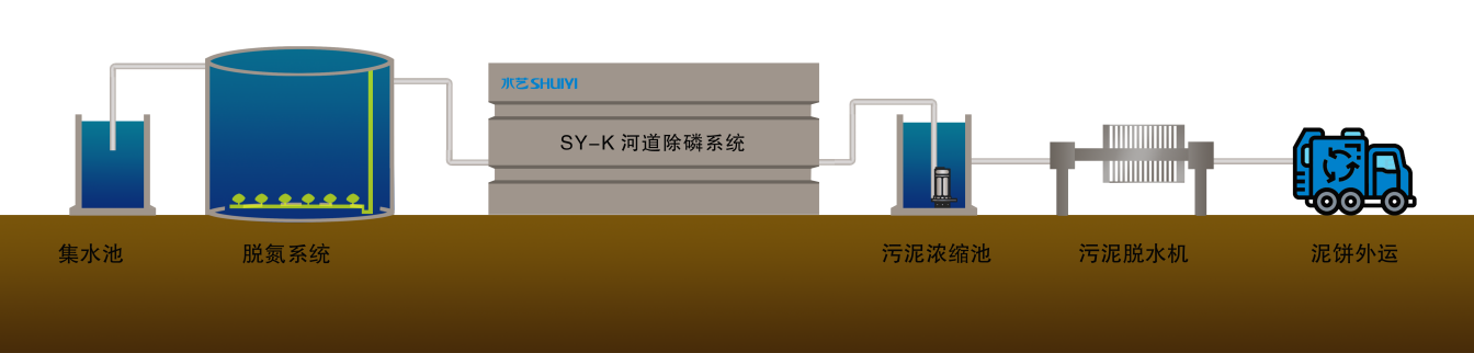 SY-K河道脫氮除磷系統(tǒng)設(shè)備高度集成,生化反應(yīng)快速,去除效率高、出水水質(zhì)好、可直接回用。從缺氧反應(yīng)池回流污泥到厭氧反應(yīng)室,創(chuàng)造了有利于聚磷菌的厭氧釋磷的環(huán)境,強(qiáng)化了聚磷菌的生物選擇,從而實(shí)現(xiàn)高效除磷脫氮。