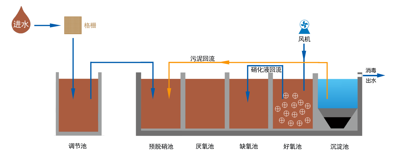 新型UCT一體化高效生物反應器,采用改良型UCT工藝結合改性MBBR生物膜工藝,提升了傳統(tǒng)的A2/O工藝脫氮除磷效果。設備運行維護簡單,出水可穩(wěn)定達到《城鎮(zhèn)污水處理廠污染物排放標準》(GB18918-2002)一級A標準。